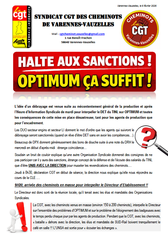 CHEMINOTS – HALTE AUX SANCTIONS ! by UD CGT Nièvre6 février 202612 h 33 minLeave a comment on CHEMINOTS – HALTE AUX SANCTIONS !CHEMINOTS Partager : Partager sur Facebook(ouvre dans une nouvelle fenêtre) Facebook Partager sur X(ouvre dans une nouvelle fenêtre) X